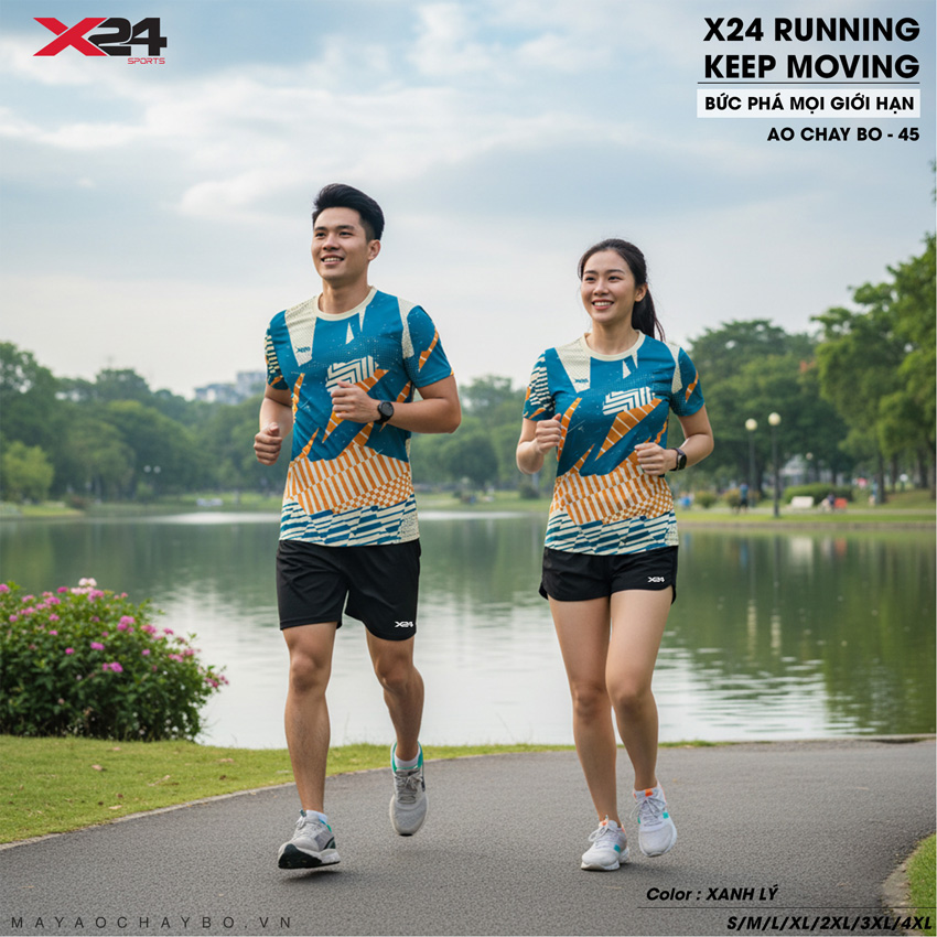Với phối màu xanh lỳ chủ đạo điểm xuyết sắc cam nổi bật và các chi tiết trắng trung tính, chiếc áo chạy bộ X24 – Mã 45 mang lại ấn tượng năng động ngay từ cái nhìn đầu tiên. Phong cách thiết kế hình học hiện đại không chỉ nâng tầm cá tính mà còn giúp người mặc luôn nổi bật trên đường chạy.